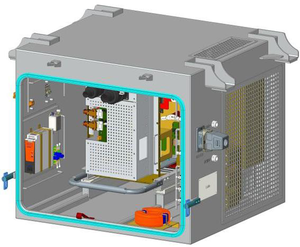 10kW充电机采用车底吊装,箱体主要材质为碳钢。整个产品重量轻便于现场维护。